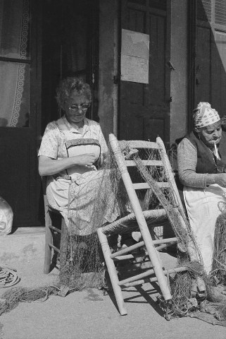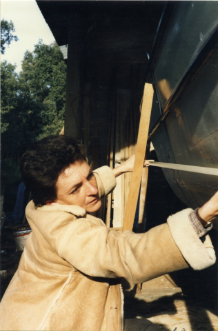 Fonds Annie-Hélène Dufour – Pêche et pêcheurs du Var : Annie-Hélène Dufour mesurant un bateau (Salins d’Hyères, Var) 1986.
